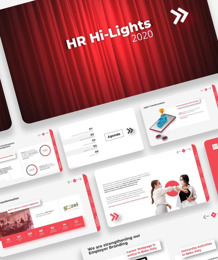 We designed a minimalist and impactful visual narrative. By focusing on key performance indicators (KPIs) through custom icons and dynamic layouts, we created a presentation that feels both professional and inspiring, highlighting the human success behind the numbers. A prestigious annual report deck that effectively showcased the HR department's strategic contributions, leaving a lasting impression on the executive board and reinforcing brand transparency.